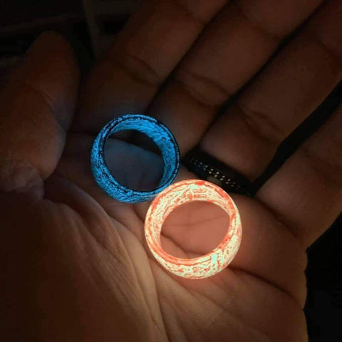 Après avoir absorbé de la lumière, l’anneau conserve son brillant pendant de nombreuses heures, prêt à rayonner chaque fois qu’il sera imprégné par une source lumineuse.